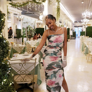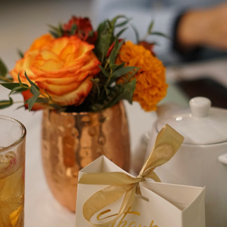 Tea has always been a huge part of my childhood. Growing up my mom was apart of women's tea group that would meet every first first Friday for tea and socializing. I even had a tea party to celebrate my birthday as a teenager, so it seemed fitting to do tea. I found Tea Rose Garden in Pasadena, CA they were very accommodating and professional. I chose the Buy Out Queen's Package, which was a fixed menu package that you pre-select before your arrival, and it did not disappoint. The food was tasty and the tea was delicious. I also incorporated goody bags for my guest which included a mini loose leaf tea packet, tea spoon, and heart shaped tea infuser, found on amazon along with my tea accessories. I purchased my dress from Express, and had wore my green shoes from Zara. I would definitely recommend Tea Rose Garden, for more info check out their website at tearosegarden.com